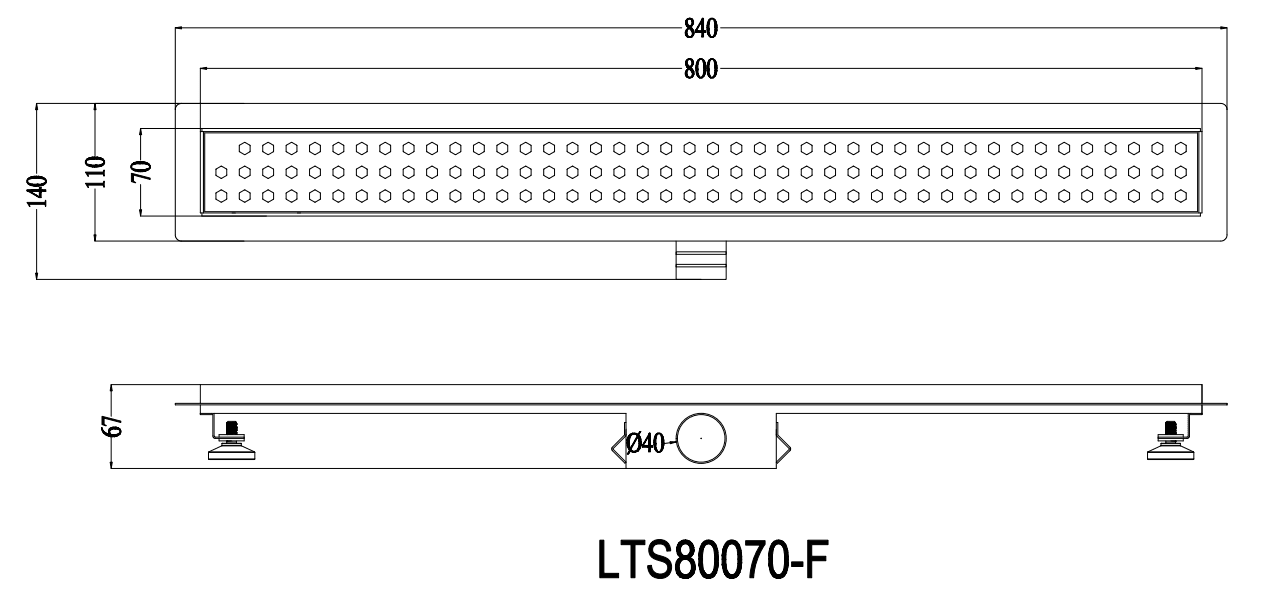 Hexagon style long floor drain 304 stainless steel