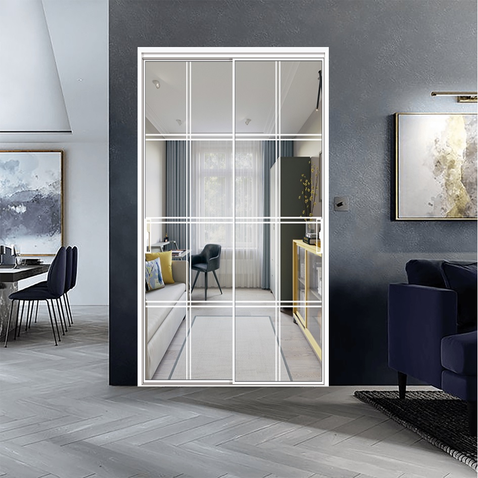 Chic Modern Interior Sliding Slim Door with Tempered Glass and Aluminum Finish