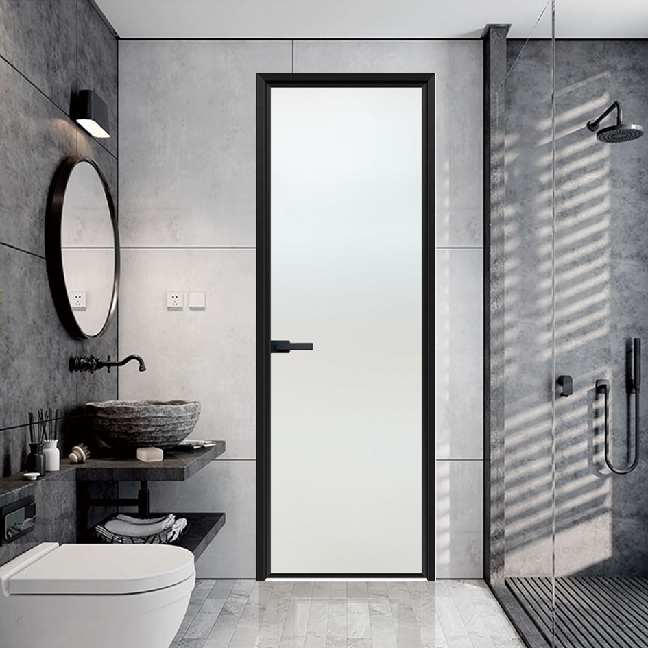 Interior Aluminum Alloy Bathroom Glass Door with Horizontal Opening Design