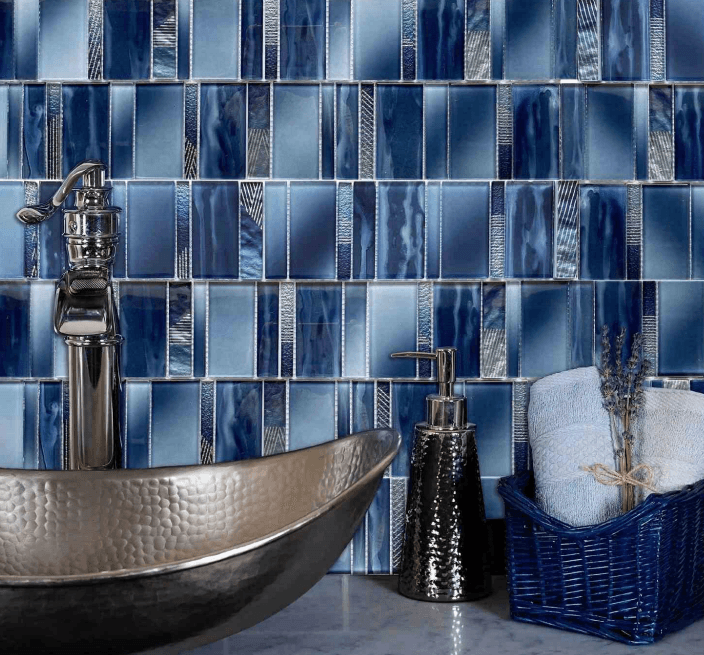 Kitchen bathroom Living room Purple blue + black multi-color mixed glass Mosaic