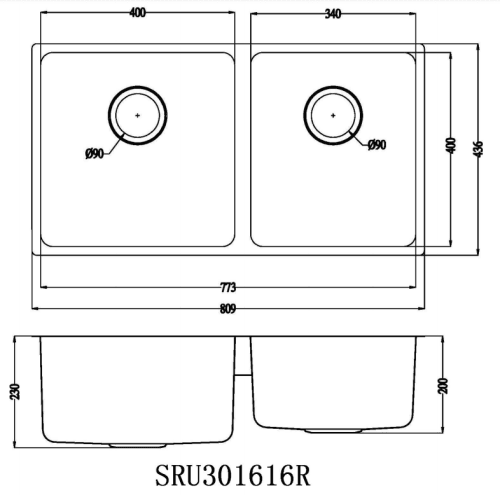 | Sink size | 809*436*230mm |